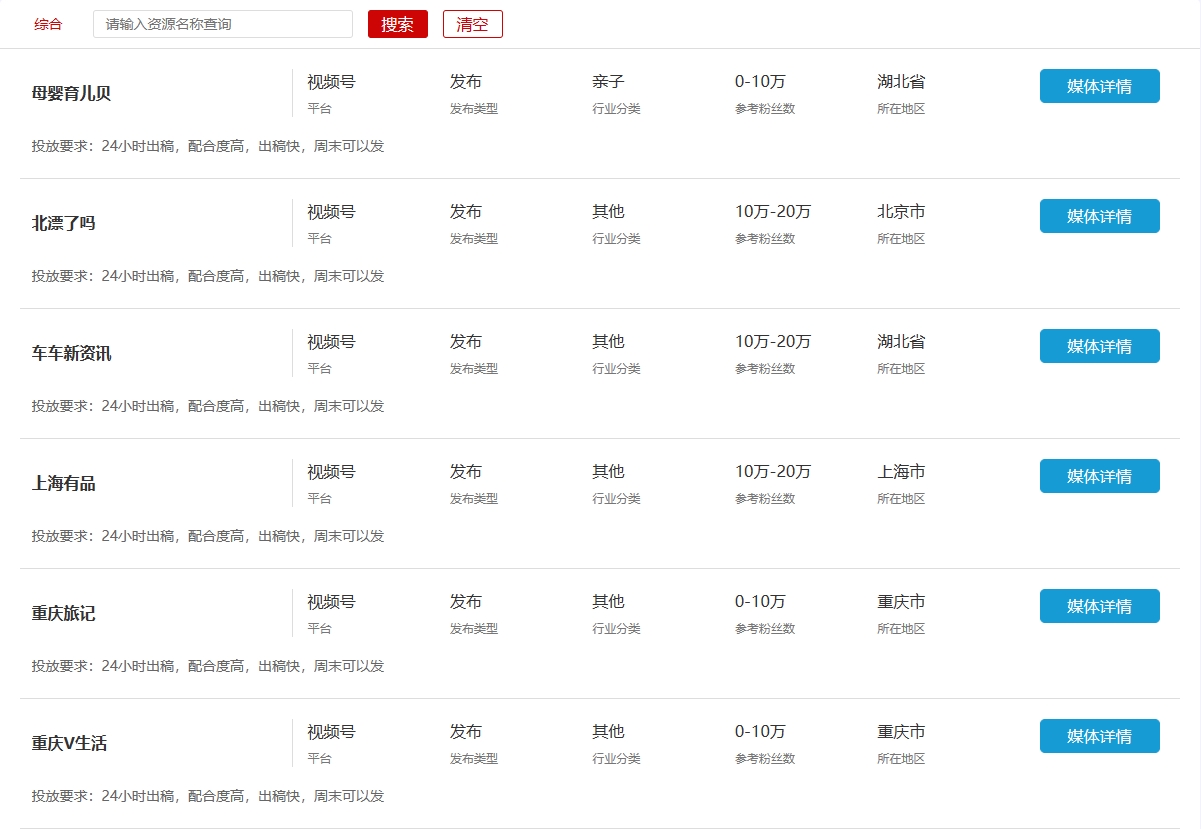 抖音号、视频号等媒体资源