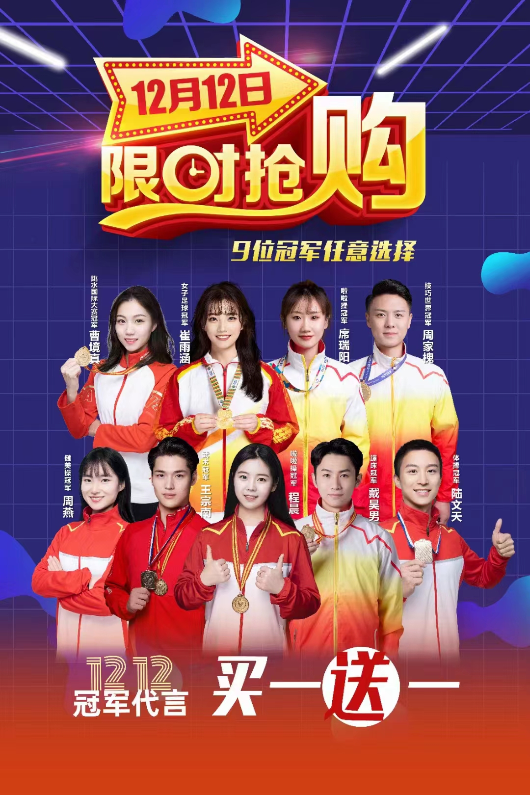 冠军代言,买一送一!9位冠军任意选择,代言人照片、亲笔签名授权书、肖像授权使用、祝福视频等,超值活动!超高性价比!