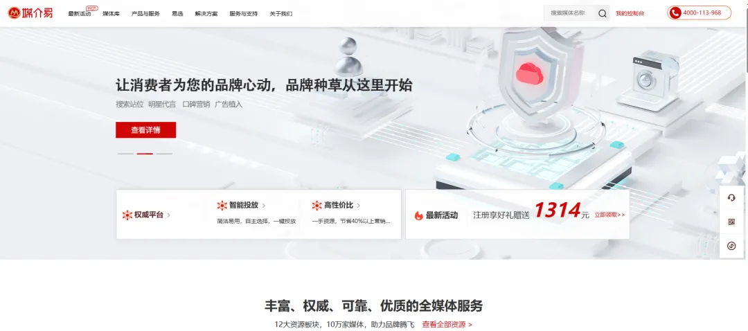 如今的媒体发稿平台,资源相当丰富,如媒介易,拥有10万+媒体资源,60000+主流媒体官方网站报道,并积累了多年的服务经验。