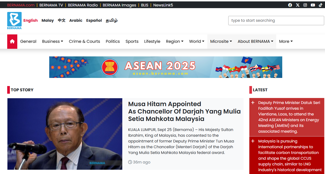 图源:BERNAMA网站首页