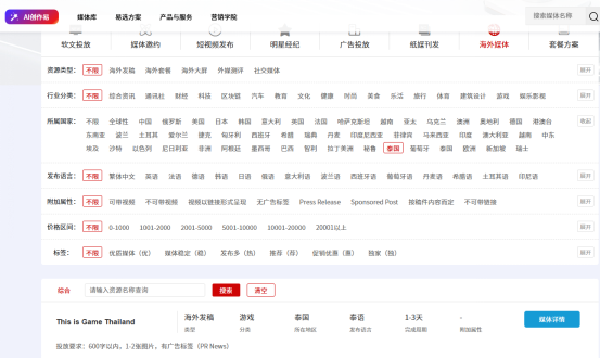 因此,如果你也想发展泰国市场,可以选择gcapayment,如果你不知道如何获得海外媒体发稿渠道,直接在媒介易平台搜索海外发稿选择泰国即可,操作简单,轻松发稿。媒介易,让你的品牌传播更容易!