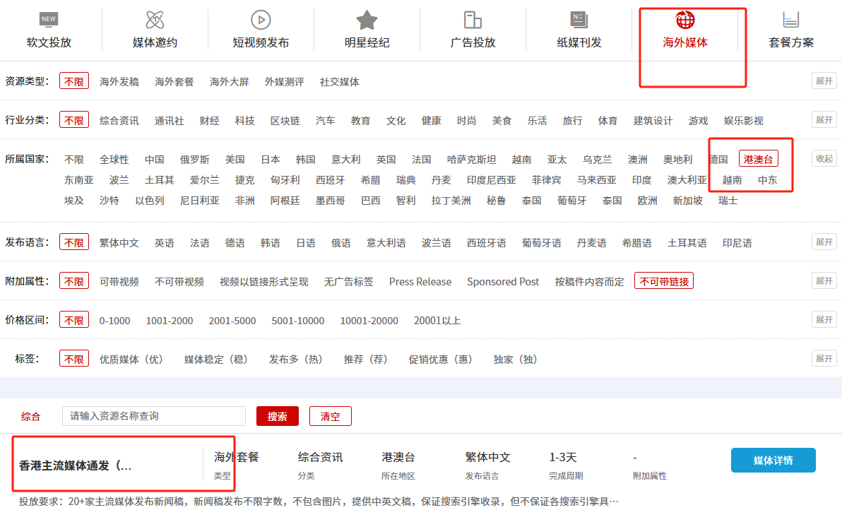 只需打开媒介易官网,进入媒体库,选择海外媒体专区,点击香港,然后选择香港媒体通发。