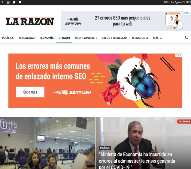 本地市场深耕:La Razón专注于秘鲁本地新闻,能够精准触达秘鲁市场的消费者,提升品牌在当地的影响力。