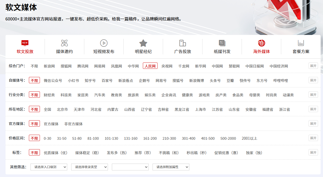 此外,如果你想在人民网高效发稿,提高通过率,也可以选择专业的服务机构,比如媒介易。作为全国首家全媒体传播服务平台,媒介易拥有10w+媒体资源,对于人民网的稿件风格,审核机制,发稿流程有丰富的经验,如果你也想在人民网发稿,可以打开媒介易,进入媒体库,找到人民网即可。