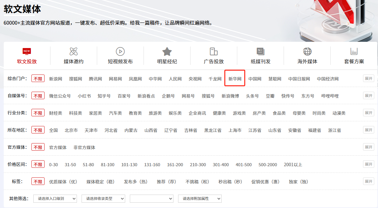 媒介易作为全国首家全媒体传播服务平台,拥有10w+媒体资源,如果你想在新华网投稿,可以打开媒介易,进入媒体库,选择软文投放板块,找到新华网,然后就可以点击投放了,操作过程非常简单。