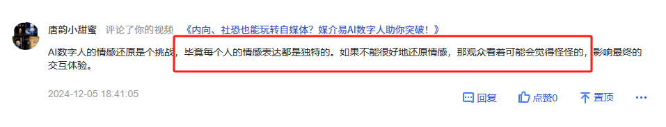 当然,很多人发出疑问?用媒介易AI数字人做出来的视频会不会很呆板,没有真人感,我们也收到很多很多人发出疑问,用AI数字人做出来的视频它的声音、它的动作,能够还原真人吗?在这里解答一下,整体来说,还原度都是可以达到90%以上的,甚至它的声音会比真人更加流畅,不会出现卡壳,而且克隆的声音听起来并不会很AI,是很像真人说话的声音的。