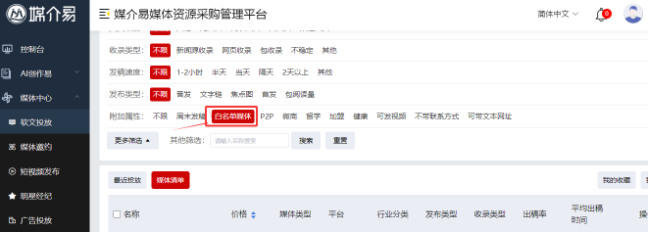 划重点:如果你在发稿平台看到媒体备注里写着 "查看白名单",点进去就能看到这些官方认证的 "正规军" 列表啦。比如在媒介易后台,轻轻一点就能查到,超方便!