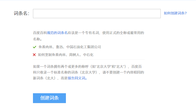 输入自己的词条名字,并且添加义项,如某某公司创始人,中国内地女歌手等,已有重名的也不受影响。
