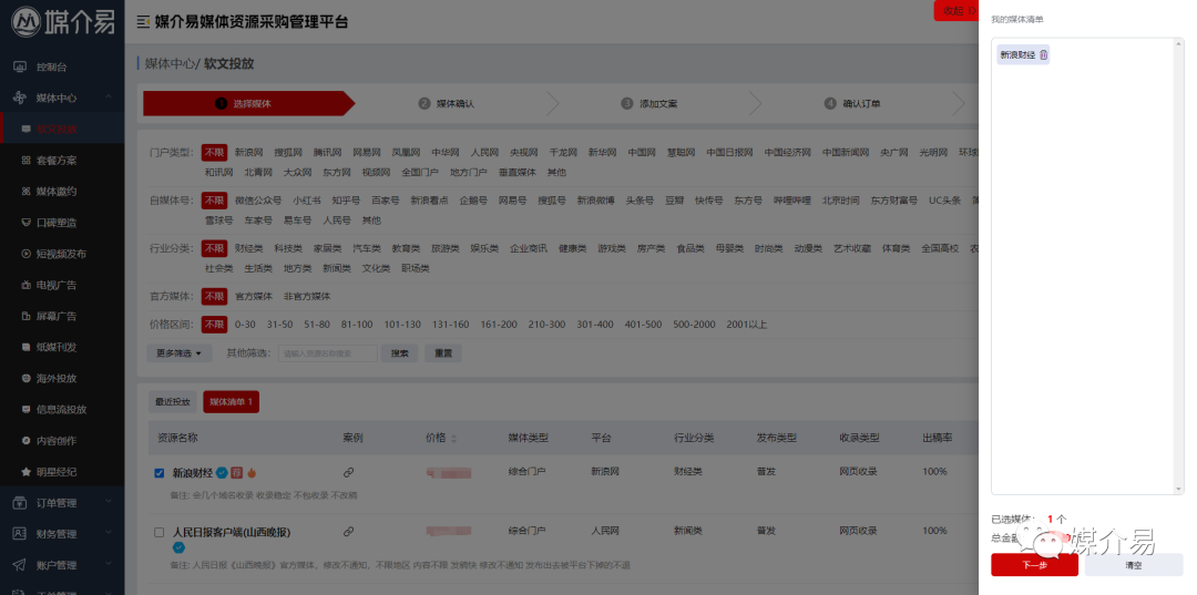我们简化了用户的下单操作流程,您在挑选媒体后,直接上传稿件进行投放,提高了下单效率。优化了用户体验,让您更便捷地完成广告投放。