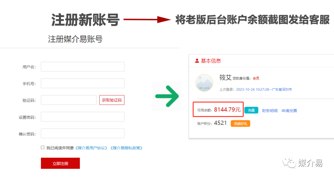 为了确保您在新版系统中能够持续享受到我们的服务,请您重新注册一个新账户。同时,请联系您的专属客服,并提供账户余额的截图以进行后续处理。请注意,老版系统的订单记录和资金记录均不可迁移至新版系统。